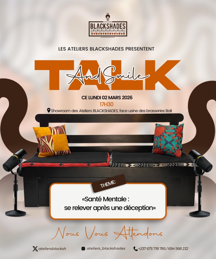 La première édition de Talk and Smile se tiendra le lundi 02 mars à 17h, aux Ateliers BLACKSHADES, situés à Bali, face à l’usine Boissons du Cameroun, à Douala.